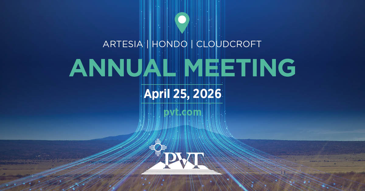 Official notice is hereby given that the Annual Meeting of the Members of Peñasco Valley Telephone Cooperative, Inc. will be held on the 25th day of April 2026 at the Artesia Public Schools Administration Building, 301 Bulldog Boulevard, Artesia, New Mexico. Members can register, vote, and participate at the following locations, where a live broadcast will also be held: